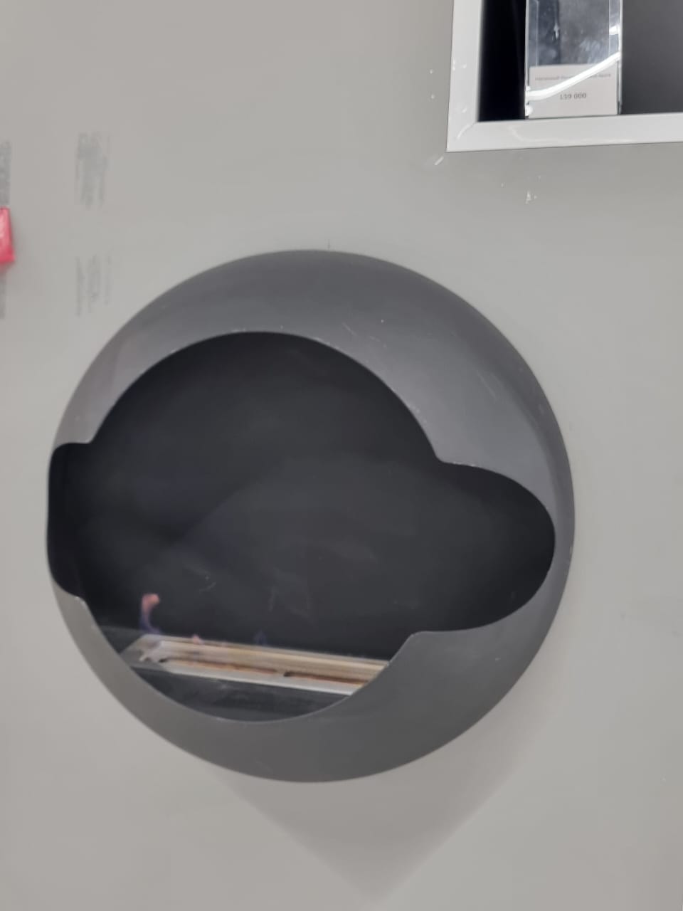 Современный био камин Firezo Apple круглой приплюснутой формы настенного типа для квартиры или дома – находка для интерьера в стиле лофт, хай-тек и других, где приветствуется минимализм и интересные детали.