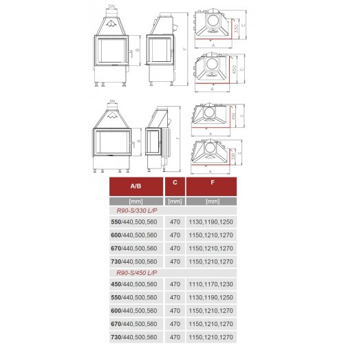 Каминная топка Kobok Corner 600 R90-S/450 L/P
