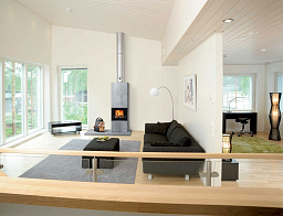 Стиль модели — рустикальный, подчеркнутый высоким дымоходным колпаком, деревянной каминной балкой и каминной облицовкой из природного камня. Каминная модель, предназначенная для отопления больших помещений.