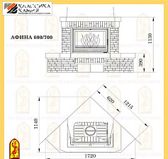 Предтопочная и надтопочная часть выложена шамотом песочно-жёлтого цвета. Каминная балка изготовленная из МДФ и покрытая шпоном дуба, послужит отличной полкой для каминных аксессуаров, таких как часы, канделябры, рамки с фотографиями и др.