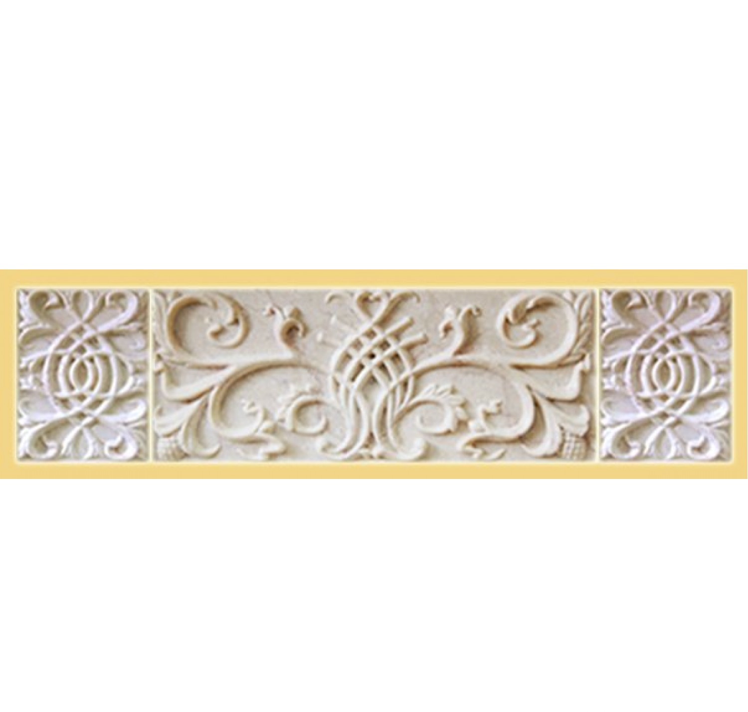 Облицовка изготовлена из натурального полированного мрамора кремового и коричневого цвета.